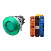 押ボタンスイッチ(φ22), 照光, 金属ベゼル, きのこ形, オルタネイト, ボタンの色: 緑, IP66, ねじ端子台, 接点構成: NO/点灯ユニット/NC, LEDランプ色: 緑, LEDランプ電圧: AC200/220/230/240V