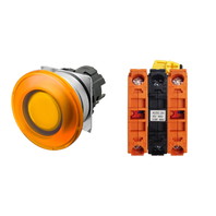 押ボタンスイッチ(φ22), 照光, 金属ベゼル, きのこ形, オルタネイト, ボタンの色: 橙, IP66, ねじ端子台, 接点構成: NC/点灯ユニット/NC, LEDランプ色: 橙, LEDランプ電圧: AC/DC6V