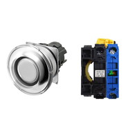 押ボタンスイッチ(φ22), 照光, 金属ベゼル, きのこ形, オルタネイト, ボタンの色: 白, IP66, ねじ端子台, 接点構成: NO/点灯ユニット/-, LEDランプ色: 黄, LEDランプ電圧: AC/DC24V