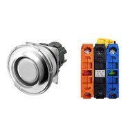 押ボタンスイッチ(φ22), 照光, 金属ベゼル, きのこ形, オルタネイト, ボタンの色: 白, IP66, ねじ端子台, 接点構成: NO/点灯ユニット/NC, LEDランプ色: 黄, LEDランプ電圧: AC/DC24V