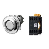 押ボタンスイッチ(φ22), 照光, 金属ベゼル, きのこ形, オルタネイト, ボタンの色: 白, IP66, プッシュインPlus端子台, 接点構成: -/点灯ユニット/NC, LEDランプ色: 黄, LEDランプ電圧: AC/DC24V