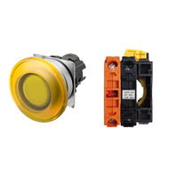 押ボタンスイッチ(φ22), 照光, 金属ベゼル, きのこ形, オルタネイト, ボタンの色: 黄, IP66, ねじ端子台, 接点構成: -/点灯ユニット/NC, LEDランプ色: 黄, LEDランプ電圧: AC/DC24V