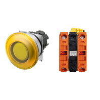 押ボタンスイッチ(φ22), 照光, 金属ベゼル, きのこ形, オルタネイト, ボタンの色: 黄, IP66, ねじ端子台, 接点構成: NC/点灯ユニット/NC, LEDランプ色: 黄, LEDランプ電圧: AC/DC6V
