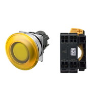 押ボタンスイッチ(φ22), 照光, 金属ベゼル, きのこ形, オルタネイト, ボタンの色: 黄, IP66, プッシュインPlus端子台, 接点構成: -/点灯ユニット/NC, LEDランプ色: 黄, LEDランプ電圧: AC100/110/120V
