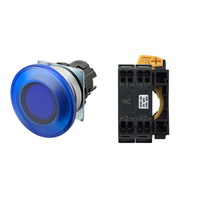 押ボタンスイッチ(φ22), 照光, 金属ベゼル, きのこ形, モーメンタリ, ボタンの色: 青, IP66, プッシュインPlus端子台, 接点構成: -/点灯ユニット/NC, LEDランプ色: 青, LEDランプ電圧: AC/DC24V