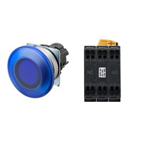 押ボタンスイッチ(φ22), 照光, 金属ベゼル, きのこ形, モーメンタリ, ボタンの色: 青, IP66, プッシュインPlus端子台, 接点構成: NO/点灯ユニット/NC, LEDランプ色: 青, LEDランプ電圧: AC/DC12V