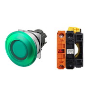 押ボタンスイッチ(φ22), 照光, 金属ベゼル, きのこ形, モーメンタリ, ボタンの色: 緑, IP66, ねじ端子台, 接点構成: -/点灯ユニット/NC, LEDランプ色: 緑, LEDランプ電圧: AC100/110/120V