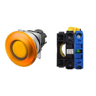 押ボタンスイッチ(φ22), 照光, 金属ベゼル, きのこ形, モーメンタリ, ボタンの色: 橙, IP66, ねじ端子台, 接点構成: NO/点灯ユニット/-, LEDランプ色: 橙, LEDランプ電圧: AC/DC6V