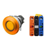 押ボタンスイッチ(φ22), 照光, 金属ベゼル, きのこ形, モーメンタリ, ボタンの色: 橙, IP66, ねじ端子台, 接点構成: NO/点灯ユニット/NC, LEDランプ色: 橙, LEDランプ電圧: AC/DC12V