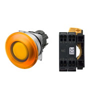押ボタンスイッチ(φ22), 照光, 金属ベゼル, きのこ形, モーメンタリ, ボタンの色: 橙, IP66, プッシュインPlus端子台, 接点構成: -/点灯ユニット/NC, LEDランプ色: 橙, LEDランプ電圧: AC200/220/230/240V