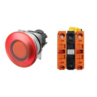 押ボタンスイッチ(φ22), 照光, 金属ベゼル, きのこ形, モーメンタリ, ボタンの色: 赤, IP66, ねじ端子台, 接点構成: NC/点灯ユニット/NC, LEDランプ色: 赤, LEDランプ電圧: AC200/220/230/240V
