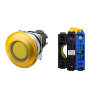 押ボタンスイッチ(φ22), 照光, 金属ベゼル, きのこ形, モーメンタリ, ボタンの色: 黄, IP66, ねじ端子台, 接点構成: NO/点灯ユニット/-, LEDランプ色: 黄, LEDランプ電圧: AC/DC12V