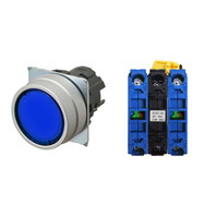 押ボタンスイッチ(φ22), 照光, 金属ベゼル, 平形, オルタネイト, ボタンの色: 青, IP66, ねじ端子台, 接点構成: NO/点灯ユニット/NO, LEDランプ色: 青, LEDランプ電圧: AC/DC24V