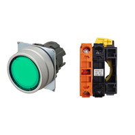 押ボタンスイッチ(φ22), 照光, 金属ベゼル, 平形, オルタネイト, ボタンの色: 緑, IP66, ねじ端子台, 接点構成: -/点灯ユニット/NC, LEDランプ色: 緑, LEDランプ電圧: AC/DC12V