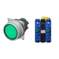 押ボタンスイッチ(φ22), 照光, 金属ベゼル, 平形, オルタネイト, ボタンの色: 緑, IP66, ねじ端子台, 接点構成: NO/点灯ユニット/NO, LEDランプ色: 緑, LEDランプ電圧: AC/DC6V