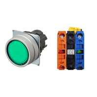 押ボタンスイッチ(φ22), 照光, 金属ベゼル, 平形, オルタネイト, ボタンの色: 緑, IP66, ねじ端子台, 接点構成: NO/点灯ユニット/NC, LEDランプ色: 緑, LEDランプ電圧: AC/DC6V