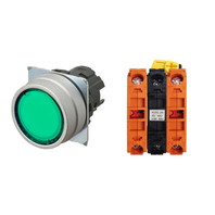 押ボタンスイッチ(φ22), 照光, 金属ベゼル, 平形, オルタネイト, ボタンの色: 緑, IP66, ねじ端子台, 接点構成: NC/点灯ユニット/NC, LEDランプ色: 緑, LEDランプ電圧: AC/DC6V