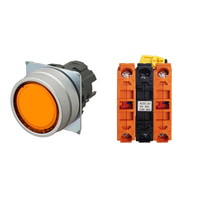 押ボタンスイッチ(φ22), 照光, 金属ベゼル, 平形, オルタネイト, ボタンの色: 橙, IP66, ねじ端子台, 接点構成: NC/点灯ユニット/NC, LEDランプ色: 橙, LEDランプ電圧: AC200/220/230/240V