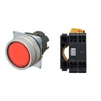 押ボタンスイッチ(φ22), 照光, 金属ベゼル, 平形, オルタネイト, ボタンの色: 赤, IP66, プッシュインPlus端子台, 接点構成: NO/点灯ユニット/-, LEDランプ色: 赤, LEDランプ電圧: AC/DC6V