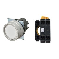 押ボタンスイッチ(φ22), 照光, 金属ベゼル, 平形, オルタネイト, ボタンの色: 白, IP66, プッシュインPlus端子台, 接点構成: NO/点灯ユニット/-, LEDランプ色: 黄, LEDランプ電圧: AC/DC6V
