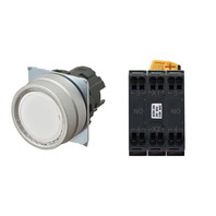 押ボタンスイッチ(φ22), 照光, 金属ベゼル, 平形, オルタネイト, ボタンの色: 白, IP66, プッシュインPlus端子台, 接点構成: NO/点灯ユニット/NO, LEDランプ色: 黄, LEDランプ電圧: AC100/110/120V