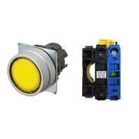 押ボタンスイッチ(φ22), 照光, 金属ベゼル, 平形, オルタネイト, ボタンの色: 黄, IP66, ねじ端子台, 接点構成: NO/点灯ユニット/-, LEDランプ色: 黄, LEDランプ電圧: AC/DC6V
