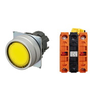 押ボタンスイッチ(φ22), 照光, 金属ベゼル, 平形, オルタネイト, ボタンの色: 黄, IP66, ねじ端子台, 接点構成: NC/点灯ユニット/NC, LEDランプ色: 黄, LEDランプ電圧: AC/DC12V