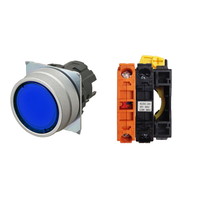 押ボタンスイッチ(φ22), 照光, 金属ベゼル, 平形, モーメンタリ, ボタンの色: 青, IP66, ねじ端子台, 接点構成: -/点灯ユニット/NC, LEDランプ色: 青, LEDランプ電圧: AC200/220/230/240V