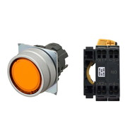 押ボタンスイッチ(φ22), 照光, 金属ベゼル, 平形, モーメンタリ, ボタンの色: 橙, IP66, プッシュインPlus端子台, 接点構成: NO/点灯ユニット/-, LEDランプ色: 橙, LEDランプ電圧: AC100/110/120V