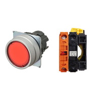 押ボタンスイッチ(φ22), 照光, 金属ベゼル, 平形, モーメンタリ, ボタンの色: 赤, IP66, ねじ端子台, 接点構成: -/点灯ユニット/NC, LEDランプ色: 赤, LEDランプ電圧: AC100/110/120V