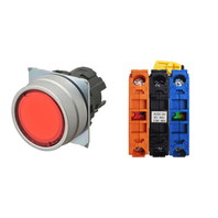 押ボタンスイッチ(φ22), 照光, 金属ベゼル, 平形, モーメンタリ, ボタンの色: 赤, IP66, ねじ端子台, 接点構成: NO/点灯ユニット/NC, LEDランプ色: 赤, LEDランプ電圧: AC/DC12V