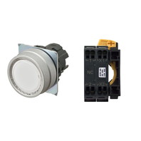 押ボタンスイッチ(φ22), 照光, 金属ベゼル, 平形, モーメンタリ, ボタンの色: 白, IP66, プッシュインPlus端子台, 接点構成: -/点灯ユニット/NC, LEDランプ色: 白, LEDランプ電圧: AC200/220/230/240V