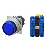 押ボタンスイッチ(φ22), 照光, 金属ベゼル, 突出形, オルタネイト, ボタンの色: 青, IP66, ねじ端子台, 接点構成: NO/点灯ユニット/NO, LEDランプ色: 青, LEDランプ電圧: AC/DC6V