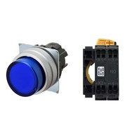 押ボタンスイッチ(φ22), 照光, 金属ベゼル, 突出形, オルタネイト, ボタンの色: 青, IP66, プッシュインPlus端子台, 接点構成: NO/点灯ユニット/-, LEDランプ色: 青, LEDランプ電圧: AC200/220/230/240V