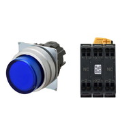 押ボタンスイッチ(φ22), 照光, 金属ベゼル, 突出形, オルタネイト, ボタンの色: 青, IP66, プッシュインPlus端子台, 接点構成: NC/点灯ユニット/NC, LEDランプ色: 青, LEDランプ電圧: AC200/220/230/240V
