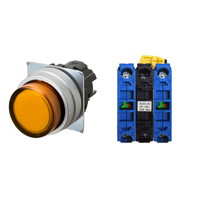 押ボタンスイッチ(φ22), 照光, 金属ベゼル, 突出形, オルタネイト, ボタンの色: 橙, IP66, ねじ端子台, 接点構成: NO/点灯ユニット/NO, LEDランプ色: 橙, LEDランプ電圧: AC/DC6V