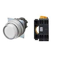 押ボタンスイッチ(φ22), 照光, 金属ベゼル, 突出形, オルタネイト, ボタンの色: 白, IP66, プッシュインPlus端子台, 接点構成: NO/点灯ユニット/-, LEDランプ色: 白, LEDランプ電圧: AC200/220/230/240V