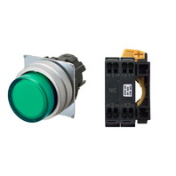 押ボタンスイッチ(φ22), 照光, 金属ベゼル, 突出形, モーメンタリ, ボタンの色: 緑, IP66, プッシュインPlus端子台, 接点構成: -/点灯ユニット/NC, LEDランプ色: 緑, LEDランプ電圧: AC/DC12V