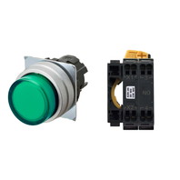 押ボタンスイッチ(φ22), 照光, 金属ベゼル, 突出形, モーメンタリ, ボタンの色: 緑, IP66, プッシュインPlus端子台, 接点構成: NO/点灯ユニット/-, LEDランプ色: 緑, LEDランプ電圧: AC200/220/230/240V