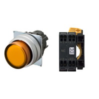 押ボタンスイッチ(φ22), 照光, 金属ベゼル, 突出形, モーメンタリ, ボタンの色: 橙, IP66, プッシュインPlus端子台, 接点構成: -/点灯ユニット/NC, LEDランプ色: 橙, LEDランプ電圧: AC/DC24V