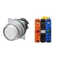 押ボタンスイッチ(φ22), 照光, 金属ベゼル, 突出形, モーメンタリ, ボタンの色: 白, IP66, ねじ端子台, 接点構成: NO/点灯ユニット/NC, LEDランプ色: 白, LEDランプ電圧: AC/DC12V