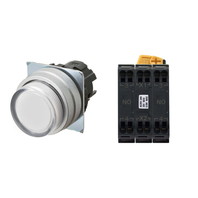 押ボタンスイッチ(φ22), 照光, 金属ベゼル, 突出形, モーメンタリ, ボタンの色: 白, IP66, プッシュインPlus端子台, 接点構成: NO/点灯ユニット/NO, LEDランプ色: 白, LEDランプ電圧: AC/DC6V
