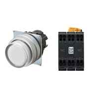 押ボタンスイッチ(φ22), 照光, 金属ベゼル, 突出形, モーメンタリ, ボタンの色: 白, IP66, プッシュインPlus端子台, 接点構成: NC/点灯ユニット/NC, LEDランプ色: 黄, LEDランプ電圧: AC100/110/120V