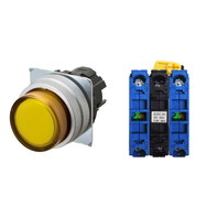 押ボタンスイッチ(φ22), 照光, 金属ベゼル, 突出形, モーメンタリ, ボタンの色: 黄, IP66, ねじ端子台, 接点構成: NO/点灯ユニット/NO, LEDランプ色: 黄, LEDランプ電圧: AC200/220/230/240V