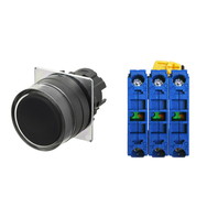 押ボタンスイッチ(φ22), 非照光, 樹脂ベゼル, フルガード形, オルタネイト, ボタンの色: 黒(不透明), IP66, ねじ端子台, 接点構成: NO/NO/NO