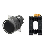 押ボタンスイッチ(φ22), 非照光, 樹脂ベゼル, フルガード形, オルタネイト, ボタンの色: 黒(不透明), IP66, プッシュインPlus端子台, 接点構成: NC/-/NC