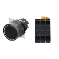 押ボタンスイッチ(φ22), 非照光, 樹脂ベゼル, フルガード形, オルタネイト, ボタンの色: 黒(不透明), IP66, プッシュインPlus端子台, 接点構成: NC/NC/NC