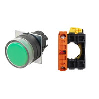 Pushbutton Switch (22-dia.), Non-lighted, Plastic bezel, Full guard, Alternate, Button color: Green (Opaque), IP66, Screw terminal block, Contacts: -/-/NC