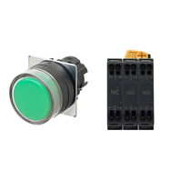 押ボタンスイッチ(φ22), 非照光, 樹脂ベゼル, フルガード形, オルタネイト, ボタンの色: 緑(不透明), IP66, プッシュインPlus端子台, 接点構成: NO/NO/NC