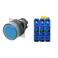 押ボタンスイッチ(φ22), 非照光, 樹脂ベゼル, フルガード形, モーメンタリ, ボタンの色: 青(不透明), IP66, ねじ端子台, 接点構成: NO/NO/NO